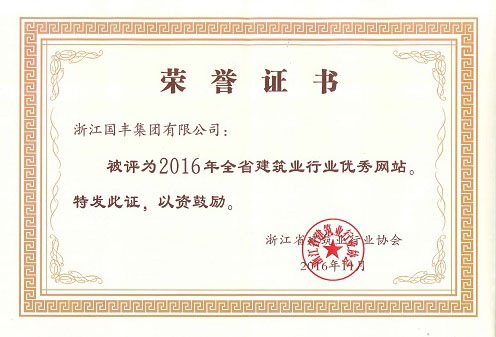2016年11月30日,浙江國豐集團(tuán)有限公司網(wǎng)站被評(píng)為“2016年浙江省建筑業(yè)行業(yè)優(yōu)秀網(wǎng)站”。