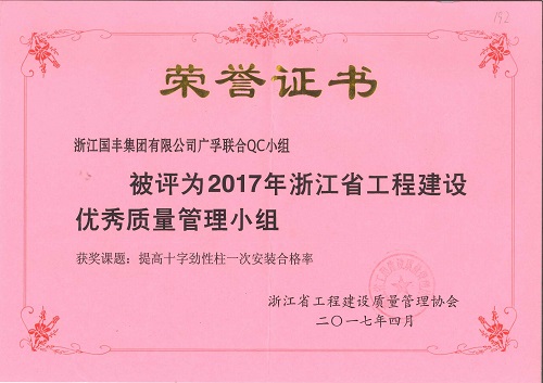 2017年4月,浙江國豐集團有限公司廣孚聯(lián)合QC小組被評為2017年浙江省工程建設優(yōu)秀質量管理小組。