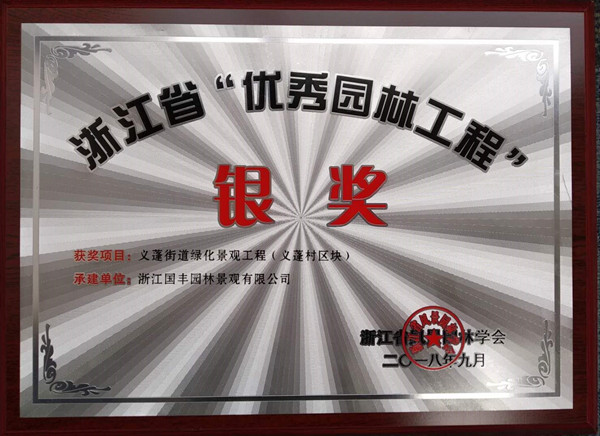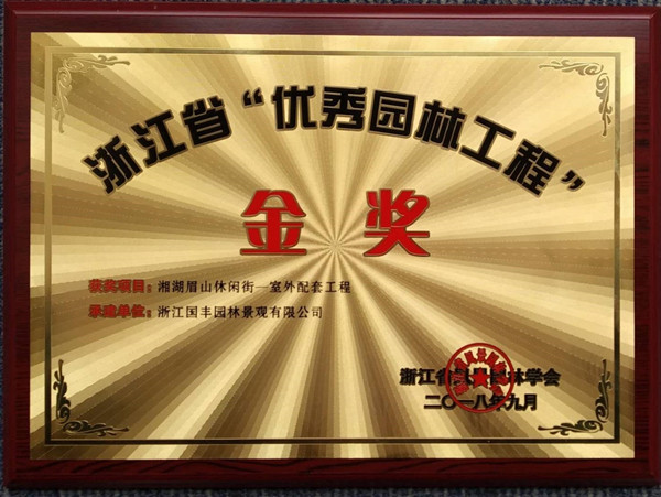 2018年8月31日,湘湖眉山休閑街-室外配套工程、義蓬街道綠化景觀工程(義蓬村區(qū)塊)分別榮獲2018年度浙江省“優(yōu)秀園林工程”金獎(jiǎng)和銀獎(jiǎng)。