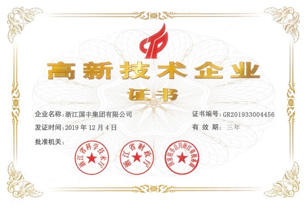 2019年12月,國豐集團(tuán)被認(rèn)定為高新技術(shù)企業(yè)。