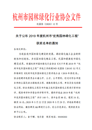 2020年6月,錢江世紀(jì)城人才專項(xiàng)用房室外景觀工程榮獲2019年度杭州市“優(yōu)秀園林綠化工程”(市內(nèi)單位及住宅類)銀獎(jiǎng)。