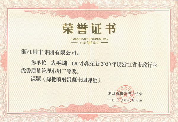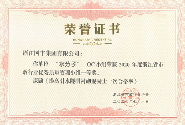 2020年7月,集團多個QC小組榮獲2020年度浙江省市政行業(yè)優(yōu)秀質(zhì)量管理小組一等獎、二等獎。