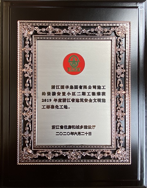 2020年6月,張溇安置小區(qū)二期工程被評為2019年度浙江省建筑安全文明施工標準化工地。