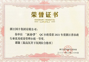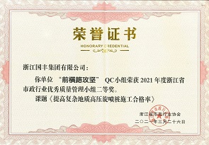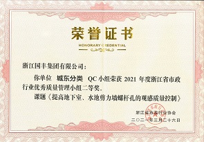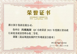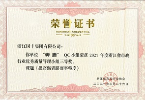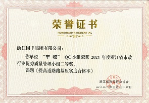 2021年3月,國豐集團(tuán)QC小組榮獲2021年度浙江省市政行業(yè)優(yōu)秀質(zhì)量管理小組一、二、三等獎。
