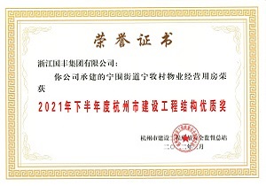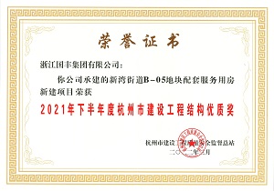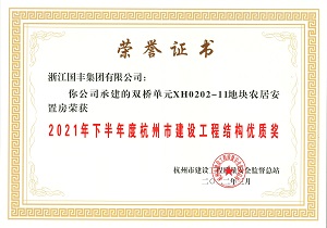 2022年3月,【2019】19號地塊商業(yè)開發(fā)項目、豐東家園安置小區(qū)、寧牧村物業(yè)經營用房、雙橋單元XH0202-11地塊農居安置房、新灣街道B-05配套服務用房新建項目等五個項目榮獲2021下半年度杭州市建設工程結構優(yōu)質獎。
