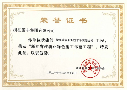 2021年12月,城東分類減量綜合體、浙江建設職業技術學院綜合樓等兩個項目榮獲浙江省建筑業綠色施工示范工程。