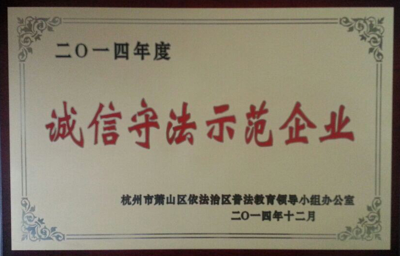 2015年1月6日,浙江國豐集團有限公司被評為“2014年度蕭山區誠信守法示范企業”。