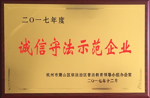 2017年12月,浙江國豐集團有限公司被評為2017年度蕭山區(qū)誠信守法示范企業(yè)。