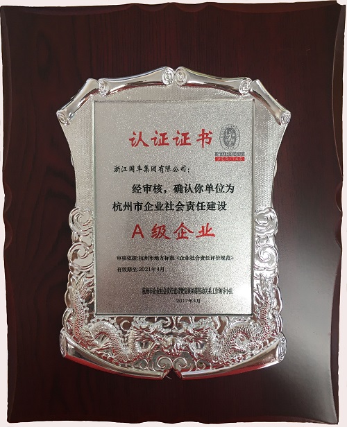 2017年4月,浙江國豐集團有限公司被評定為杭州市企業社會責任建設A級企業。