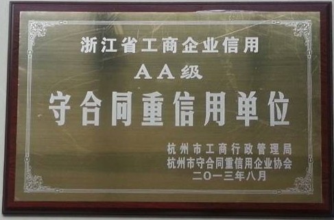 2013年8月29日,浙江國豐園林景觀有限公司被評為“浙江省工商企業信用AA級‘守合同重信用’單位”