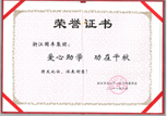 2011年8月1日,浙江國豐集團有限公司獲得麗水市關心下一代工作委員會辦法的“愛心助學,功在千秋”榮譽證書。