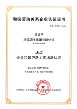 2021年2月,國豐集團通過蕭山區和諧勞動關系企業認證。
