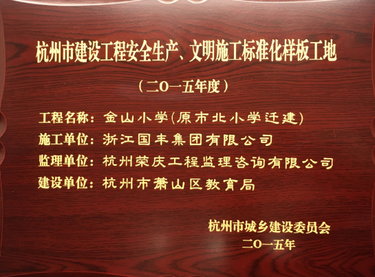 2015年11月9日,浙江國豐集團有限公司承建的金山小學(原市北小學遷建)工程榮獲杭州市建設工程安全生產、文明施工標準化樣板工地。
