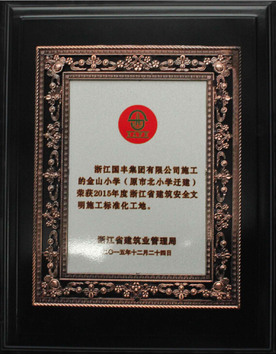 2015年12月24日,浙江國豐集團有限公司承建的金山小學(原市北小學遷建)工程,榮獲2015年度浙江省建筑安全文明施工標準化工地。