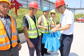 集團領導班子成員組成四個慰問小組,分別帶隊深入項目部現場,詳細詢問一線員工的工作生活情況,對他們不畏酷暑、盡職盡責的辛勤工作和敬業精神表示感謝,并為他們送上防暑清涼用品,叮囑大家在高溫環境下要時刻注意防暑降溫,做好自我防護。