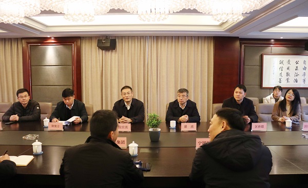 在座談交流中,集團(tuán)董事長俞文燦感謝區(qū)委、區(qū)政府一直以來對(duì)企業(yè)的關(guān)心和支持,并匯報(bào)介紹了集團(tuán)目前的整體經(jīng)營情況及新年的發(fā)展部署。