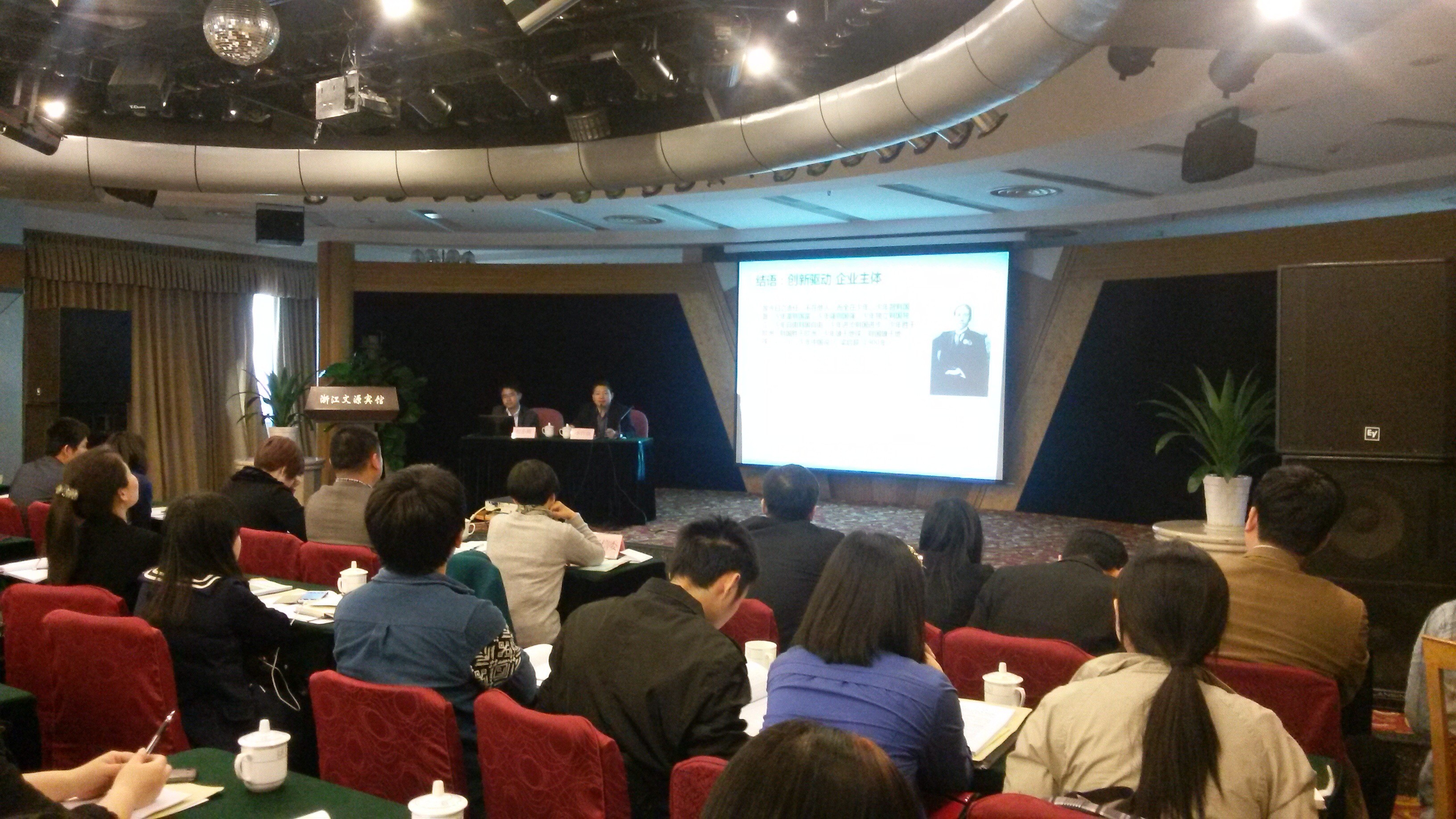 杭州市企業(yè)技術(shù)中心認(rèn)定和評(píng)價(jià)培訓(xùn)會(huì)于2014年4月21日下午在浙江文源賓館召開,浙江省經(jīng)濟(jì)和信息化委員會(huì)技裝處程小輝副處長(zhǎng)、杭州市經(jīng)濟(jì)和信息化委員會(huì)技裝處李竹強(qiáng)處長(zhǎng)、馮香琴副處長(zhǎng)及杭州市100多家企業(yè)技術(shù)中心的負(fù)責(zé)人參加了此次會(huì)議。
