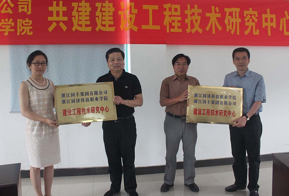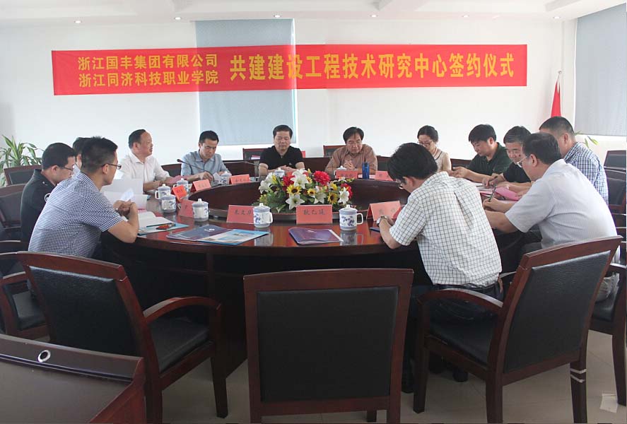 2014年6月11日上午,浙江國豐集團有限公司與浙江同濟科技職業(yè)學院合作共建建設(shè)工程技術(shù)研究中心簽約儀式在我公司舉行。區(qū)委常委、錢江世紀城•寧圍鎮(zhèn)黨(工)委書記朱先良、寧圍鎮(zhèn)二橋村黨委書記李永法出席本次簽約儀式。