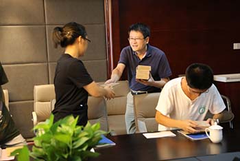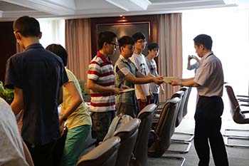 8月30日,杭州市教育資產(chǎn)營(yíng)運(yùn)管理中心主任張志龍、杭州市教育局學(xué)生資助部部長(zhǎng)王君波和副部長(zhǎng)胡敏華,學(xué)生資助領(lǐng)導(dǎo)小組辦公室的吳喜勝老師,帶領(lǐng)10名受我公司資助的貧困學(xué)子到公司總部進(jìn)行參觀并座談,整個(gè)過(guò)程充滿了愛(ài)心與感動(dòng)的氛圍。