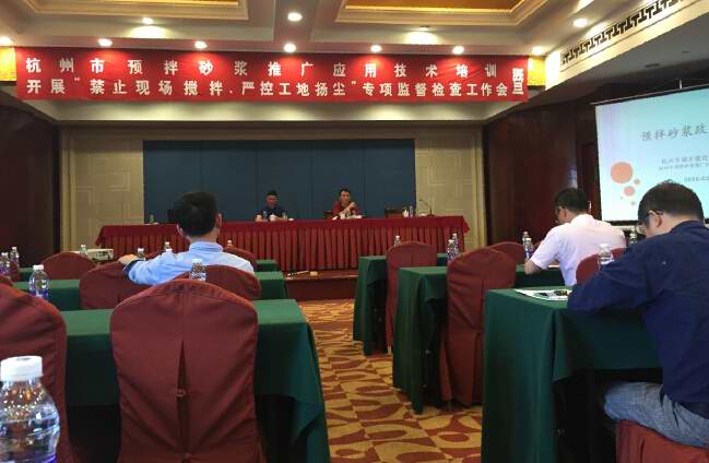 5月12日下午,杭州市建委組織蕭山區和濱江區各施工單位、工程項目相關技術人員在藍天賓館召開杭州市預拌砂漿推廣應用技術培訓暨開展“禁止現場攪拌、嚴控工地揚塵”專項監督檢查工作會。