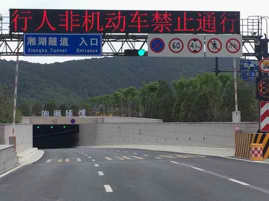 工程南起湘湖路,北面與風(fēng)情大道地面道路相接,全長(zhǎng)約700余米,凈高4.5米,分東管、西管兩條單向隧道,東管為南向北3車道,西管為北向南 3車道,是省內(nèi)首條單向3車道湖底淺埋隧道,設(shè)計(jì)車速60公里/小時(shí)。