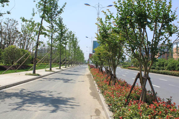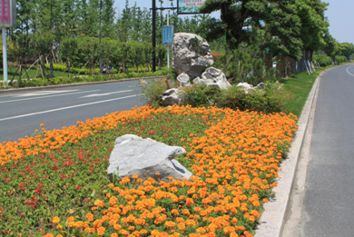 該工程植物配置以鄉土植物為主,主要種植了香樟、桂花、羅漢松、銀杏、紅葉石楠柱、金盞菊、毛鵑、紫薇、麥冬、黑松樁、金森女貞、紅花繼木球、茶花、海桐球等30余種。樹種搭配上,以高大的喬木作為骨干樹種,通過不同形體、色彩樹種的搭配來體現樹木的群體美,局部結合行車視線打造精致的節點;利用豐厚的植物群落構成疏密有致的綠色空間;運用植物的高低錯落疏密關系進行合理搭配,營造出片片“綠色祥云”,利用色葉灌木、地被及花卉形成彩色“氣流”。香樟、銀杏等高大喬木在選苗上采用了長勢良好、樹形優美、冠幅飽滿的苗木。采用行列式、叢植、林帶等手法,分別體現出個體美與整體美。(通訊員 沈建良)