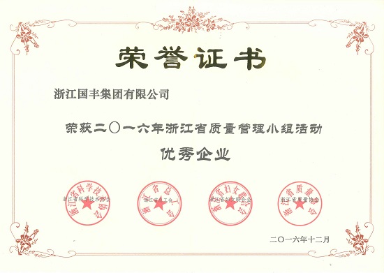 多年來我集團領導一直有著較強的質量意識,在推動 QC 小組活動達新臺階、推行全面質量管理、實施卓越績效模式和推廣質量管理工具方法應用等方面成效突出;同時,我集團在群眾性質量管理活動中表現活躍,QC 小組普及率、活動率、成果率在市、行業名列前茅,每年都有獲得浙江省優秀質量管理小組及以上的榮譽。
