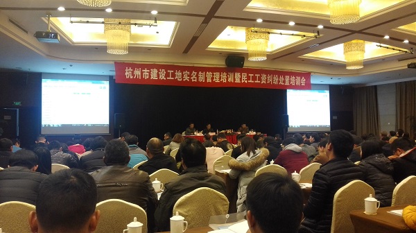 為進一步提高施工現場實名制管理人員的操作技能和管理運用,夯實施工現場實名制管理工作,促進平安工地建設,杭州市建筑企業(yè)管理站組織杭州市建設工地實名制培訓暨民工工資糾紛處置培訓會議。公司工程部及金沙湖公園湖體Ⅰ標段工程、東風港河道整治工程實名制管理員參加了此次培訓會議。