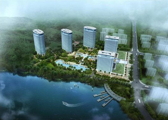 公司承建的綠城千島湖珍珠灣項目,位于淳安縣千島湖鎮珍珠大道,由尚雅置業(杭州)有限公司投資。工程總建筑面積95635.17㎡,地下一層(局部二層),地上十八至二十層(1#~2#十八層,3#~5#二十層),合同造價15813.5萬元,工期975 日歷天。