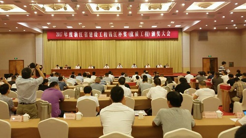 2017年度浙江省建設(shè)工程錢江杯獎(jiǎng)(優(yōu)質(zhì)工程)頒獎(jiǎng)大會(huì)9月27日在杭召開。各市建筑業(yè)協(xié)會(huì)、省建設(shè)投資集團(tuán),各有關(guān)省級(jí)專業(yè)工程協(xié)會(huì)主要負(fù)責(zé)人、獲獎(jiǎng)工程主承建單位分管副總經(jīng)理和項(xiàng)目經(jīng)理及20個(gè)參建單位代表參加會(huì)議。大會(huì)由省建筑行業(yè)協(xié)會(huì)會(huì)長(zhǎng)趙如龍主持。