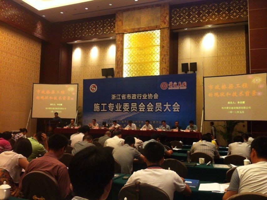 浙江省市政行業協會施工專業委員會會員大會于2013年5月24日在杭州寶盛水博園大酒店召開,參加本次會議有省市政行業協會相關領導、濱江區政府辦公室副主任及施工專業委員會會員單位代表共計200余人。