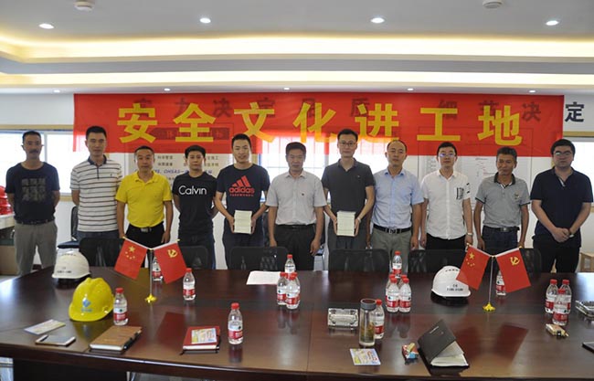 6月15日上午,蕭山區建設工程安全監督站領導來到我公司寧圍集鎮安置房工地,為廣大的農民工兄弟送來了安全文化。領導一行首先對寧圍集鎮安置房工程在工期緊、任務多、要求高等情況下安全有序施工表示肯定,也提出了安全生產更高的要求,同時希望公司項目部進一步增強主體責任,強化安全教育,并當場舉行了授書儀式,希望與會人員突出“安全第一,生命至上,安全發展”這一工作思路,確保安全生產。