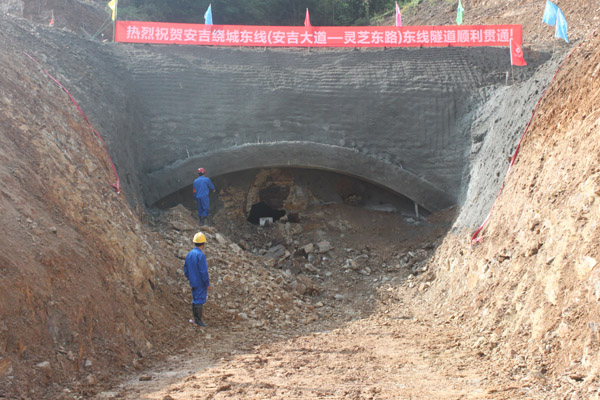 公司承建的安吉繞城東線(安吉大道—靈芝東路)工程東線隧道貫通儀式于5月28日上午舉行。安吉縣常務副縣長、各參建單位負責人等參加儀式,安吉電視臺作了現場報導。