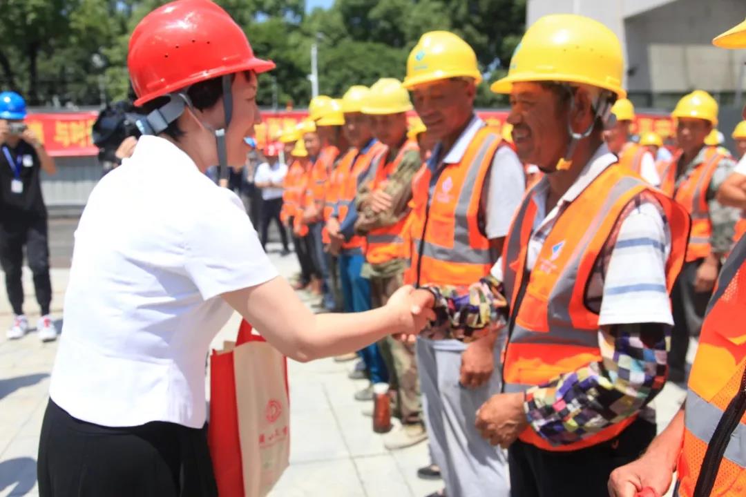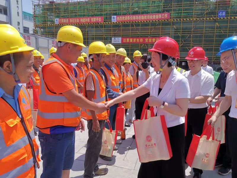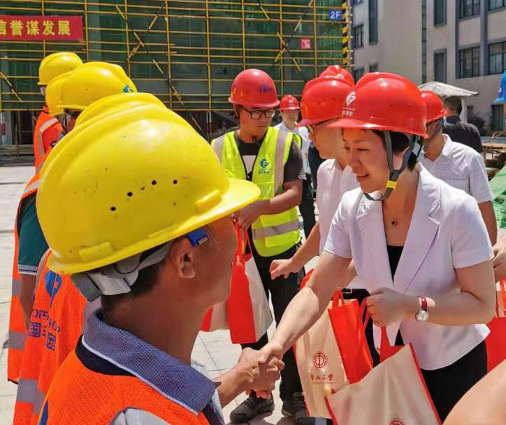 工地現場,佟書記對奮戰在一線的建筑工人表示衷心感謝和誠摯慰問。她與一線工人親切握手,仔細詢問了作業環境和生活狀況,并將夏令清涼用品送到每一位工人手中,對工人們冒著高溫酷暑,抓安全、保質量、趕進度所做的工作和取得的成效給予了高度贊揚。領導親切的關懷、真誠的話語,溫暖著每位一線工人的心。