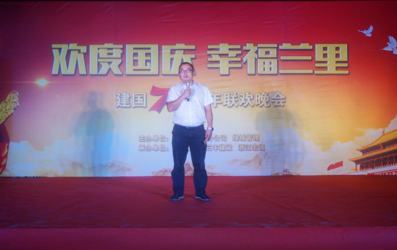 為慶祝新中國成立70周年,日前由西湖城投、綠城管理集團主辦,國豐集團、三豐建設和宏通建設共同承辦的“歡度國慶,幸福蘭里”迎建國70周年聯歡晚會在雙橋單元XH0202-11地塊農居安置房項目部隆重舉行。