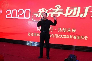 集團董事長俞文燦在團拜會上致辭,過去的2019年是新中國成立70周年,也是我們國豐集團新跨越、新征程的一年,集團各項事業都取得了較好的成績,這些成績的取得,離不開社會各界和各位來賓的關心支持,離不開全體國豐同仁的共同努力!俞董表示,2020年已經來到,新的一年我們又站在新的起點,新的一年孕育新的希望,讓我們只爭朝夕、不負韶華、同心同行,以更加飽滿的熱情,為共創我們美好的未來而努力奮斗!同時祝愿各位來賓、同仁新春快樂!在新的一年里身體健康、萬事如意、闔家幸福!