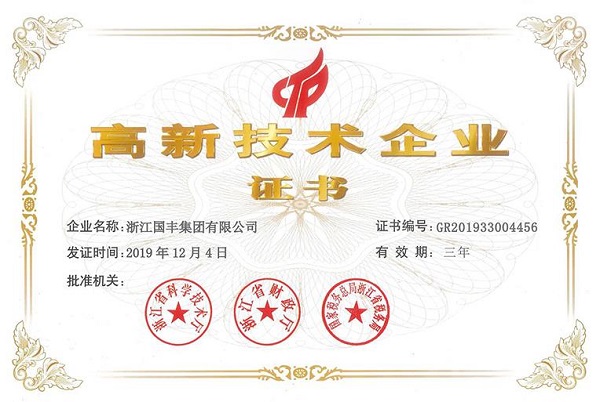 近日,根據《高新技術企業認定管理辦法》(國科發火〔2016〕32號)和《高新技術企業認定管理工作指引》(國科發火〔2016〕195號)有關規定,全國高新技術企業認定管理工作領導小組辦公室下發了《關于公示浙江省2019年擬認定高新技術企業名單的通知》,國豐集團順利通過國家高新技術企業認定,由此正式邁入國家高新技術企業行列。