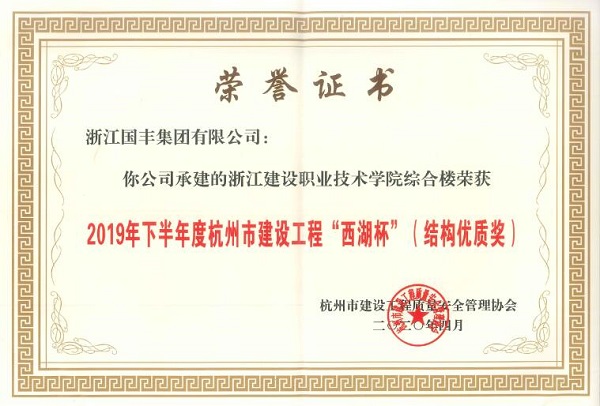 近日,杭州市建設工程質量安全管理協會公布了2019年下半年度杭州市建設工程“西湖杯”(結構優質獎)獲獎工程名單,共有150項工程獲得表彰。我集團承建的浙江建設職業技術學院綜合樓、大毛塢-仁和大道供水管道工程Ⅰ標、杭州地鐵6號線一期工程SG6-1-4標段榜上有名!
