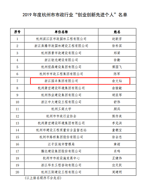 國豐集團(tuán)榮獲“2019年度杭州市市政行業(yè)先進(jìn)單位”稱號,俞文燦董事長榮獲“創(chuàng)業(yè)創(chuàng)新先進(jìn)個人”及“科技創(chuàng)新企業(yè)領(lǐng)導(dǎo)人”等榮譽(yù)。