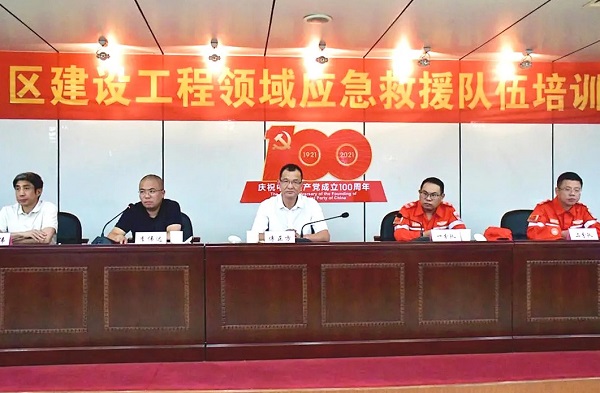 為進一步加強和完善建設工程領域應急救援隊伍建設,切實提高隊伍對于各類突發(fā)事件的救援處置能力和水平,最大程度減少人員傷亡和財產(chǎn)損失,近日,區(qū)住建局開展蕭山區(qū)建設工程領域應急救援隊伍培訓活動,區(qū)住建局黨委委員、副局長傅正方出席會議,各救援分隊百余人參加培訓。國豐集團應急救援三分隊全體成員參加培訓。