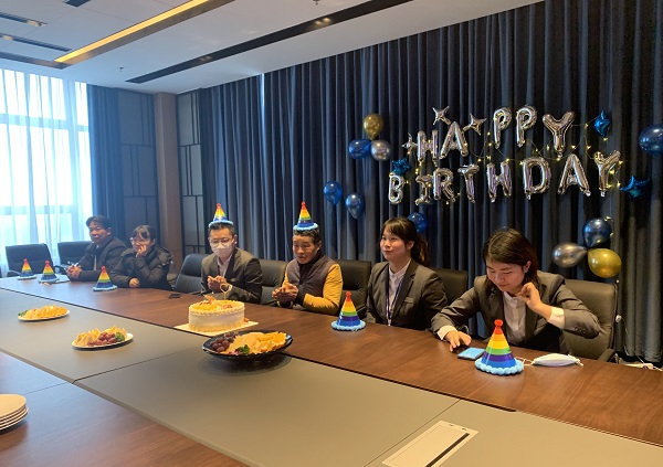 當天下午,會議室已變成了一個生日派對的專場,桌上擺放好了蘊含著公司對壽星們生日祝福的蛋糕和水果,歡樂的生日快樂歌在派對現場無限循環著,只等壽星們款款落座。