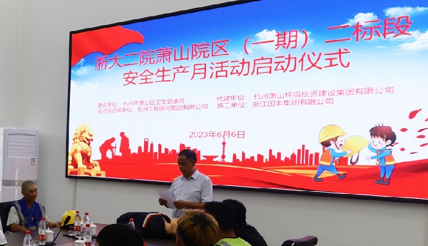 6月6日,浙大二院蕭山院區一期二標段項目部邀請建設單位、代建單位和全過程咨詢單位,舉行安全生產月活動啟動儀式。項目部將圍繞今年安全生產月“人人講安全、個個會應急”的主題,結合安全知識競賽、現場隱患排查、安全生產教育、現場應急演練等一系列活動,提高全員安全意識,增長安全知識,提升應急能力。