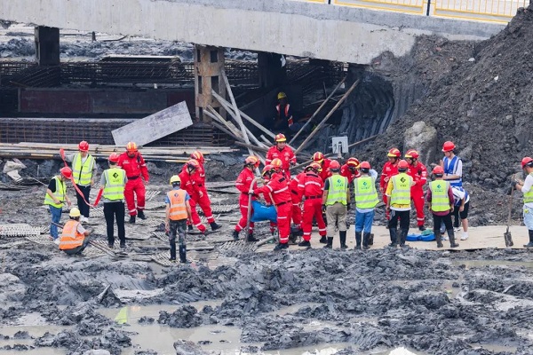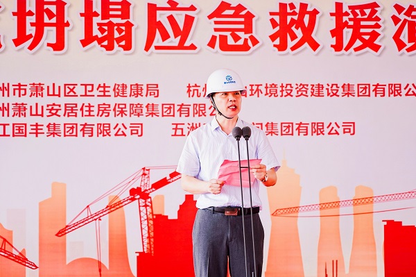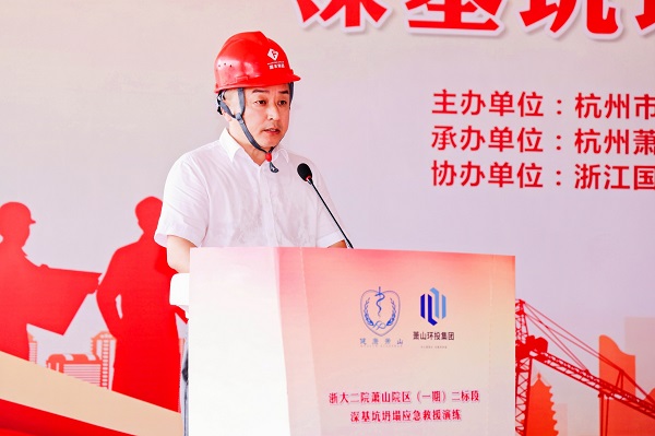 為了提高項目全體員工安全意識,規范施工現場安全管理,加強項目應對突發事件能力,切實履行安全生產主體責任。6月21日,我集團承建的浙大二院蕭山院區一期二標段項目開展深基坑坍塌應急救援演練。蕭山區衛生健康局、蕭山區環境投資建設集團有限公司、蕭山區建設工程質量安全監督站等相關單位領導蒞臨指導,集團相關部門及各在建項目負責人觀摩本次活動。