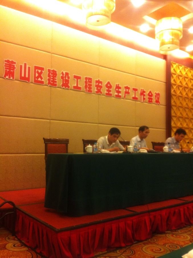 蕭山區建設工程安全生產工作會議2013年9月30日在藍天賓館召開,會議主要就前三季度建設工程安全生產工作作了回顧總結。建管科董寧科長通報了省廳和市建委關于做好安全生產工作有關文件;區住建局孫偉民副局長作了重要講話,他充分肯定了前三季度所取得的成績, 要求各單位認真認清形勢,進一步提高對安全生產認識的重要性;要加強宣傳教育,充分利用民工學校,認真開展班前崗位教育,提高民工安全意識;要加強人員到位,重點是政府投資項目,提高施工企業責任制落實到位;要狠抓危險性較大分部分項工程安全,抓好重點隱患排查;政府職能部門要提升監督職能,加強差別化管理,突出重點部位檢查,創新一些監管手段,全面落實企業遠程監控系統接入安監監管系統。