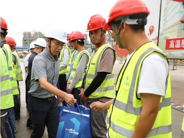為關(guān)愛高溫天氣下依然堅守在施工現(xiàn)場的工作人員,近日,杭州市建設(shè)工程質(zhì)量安全監(jiān)督總站、杭州市錢江新城開發(fā)集團有限公司、杭州天恒投資建設(shè)管理有限公司在景芳三堡單元江河匯城市綜合體匯中區(qū)塊東岸公園工程施工現(xiàn)場聯(lián)合開展了“炎炎夏日送清涼,殷殷關(guān)懷寄深情”夏日送清涼活動。